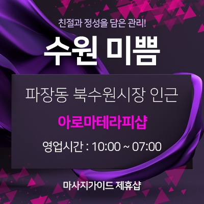 수원아로마마사지· 미쁨·아로마테라피, 전원20대한국인관리사, 정성과 친절을 담은관리 > 수원아로마, 광교1인샵, 영통1인샵 추천 정보 | 아로마가이드